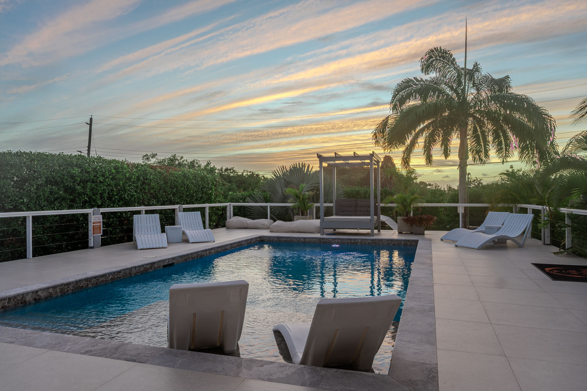 Please be aware there are exterior cameras to monitor the exterior of the property including the pool deck area. This video footage is not shared and is recorded for liability reasons in the cases of a break-in, death, injury, guests sneaking in pets, or guests disregarding the maximum occupancy allowed, and in no way infringes upon the guests’ expectations of privacy in these public areas of the property. Any attempt at disabling, redirecting or obscuring the cameras is prohibited and will result in full forfeiture of the security deposit and may, at the owner’s discretion, result in the guest being evicted without refund of outstanding nights’ rents.