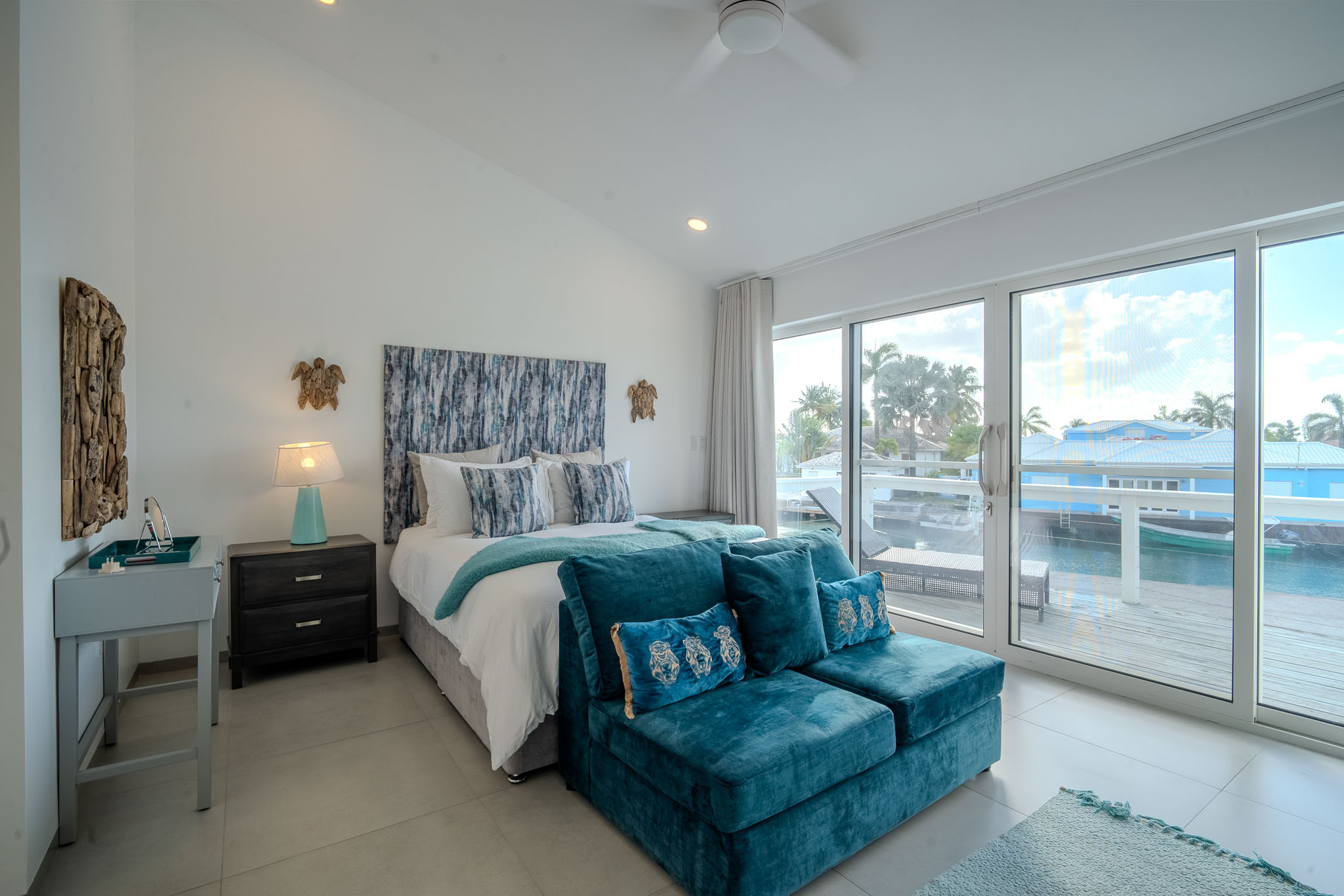 Nestled right along the wide main channel of the harbour, this villa offers unparalleled views of luxury motorboats and sailing yachts gliding by throughout the day. With air conditioning, ceiling fans, WiFi, and a smart TV, every detail is designed to keep you cool and connected in the heart of the Caribbean.