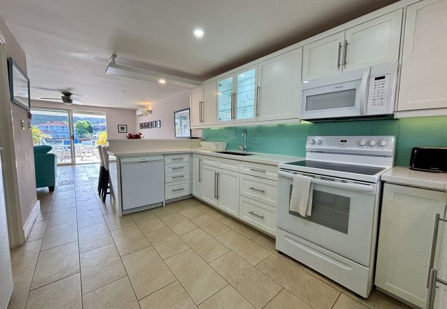 The primary bedroom will have you resting easy in the comfortable queen-sized bed with crisp linens, and you can enjoy your privacy with the en suite bathroom and air conditioning and a ceiling fan ensure your comfort day and night. The bedroom's private balcony is perfect for enjoying your morning coffee, while indulging in breathtaking views of the harbor framed by majestic mountains and kissed by a gentle breeze.
