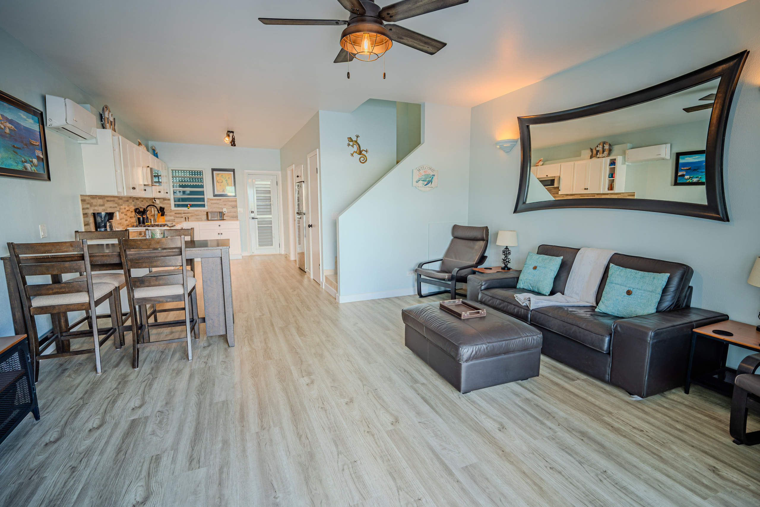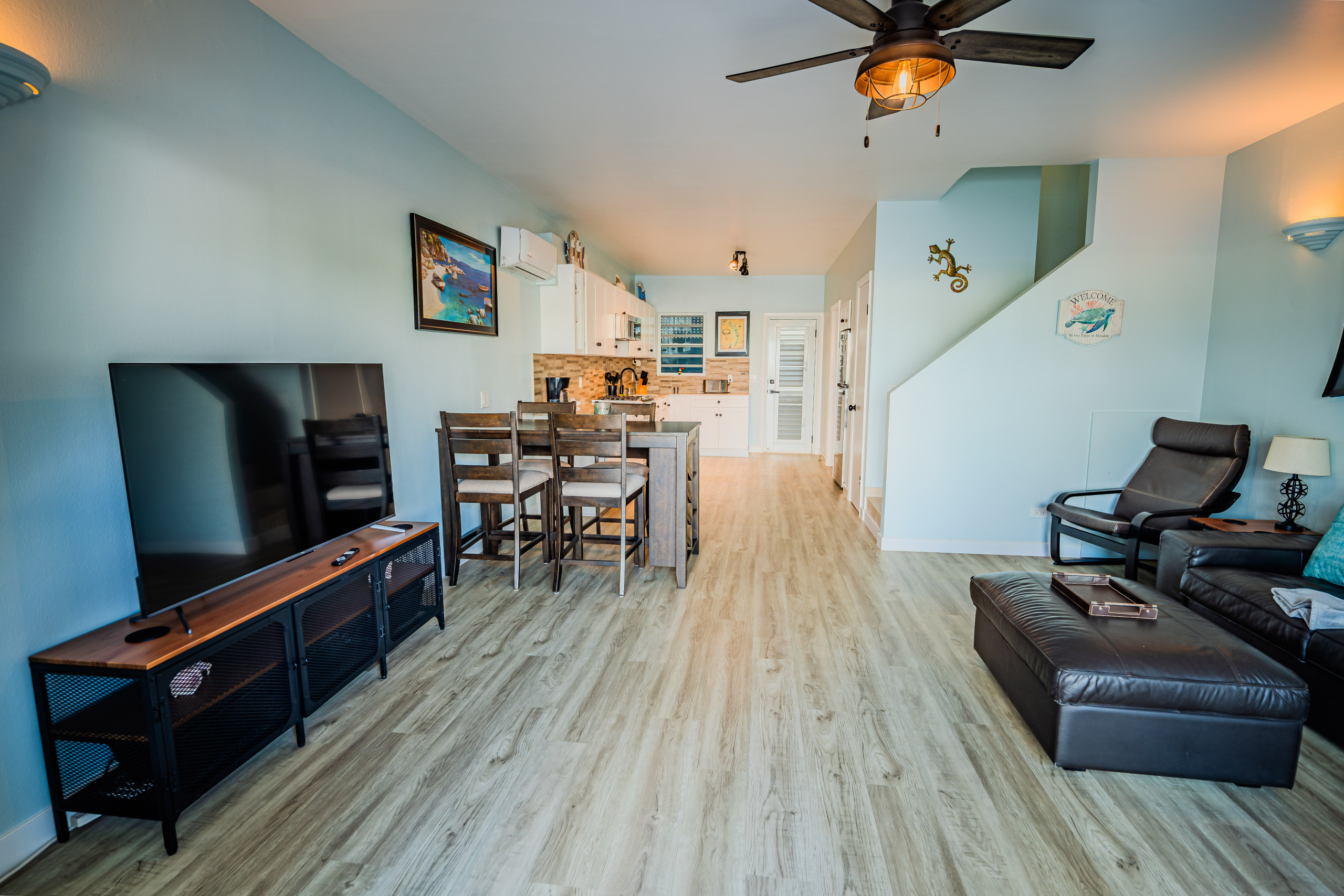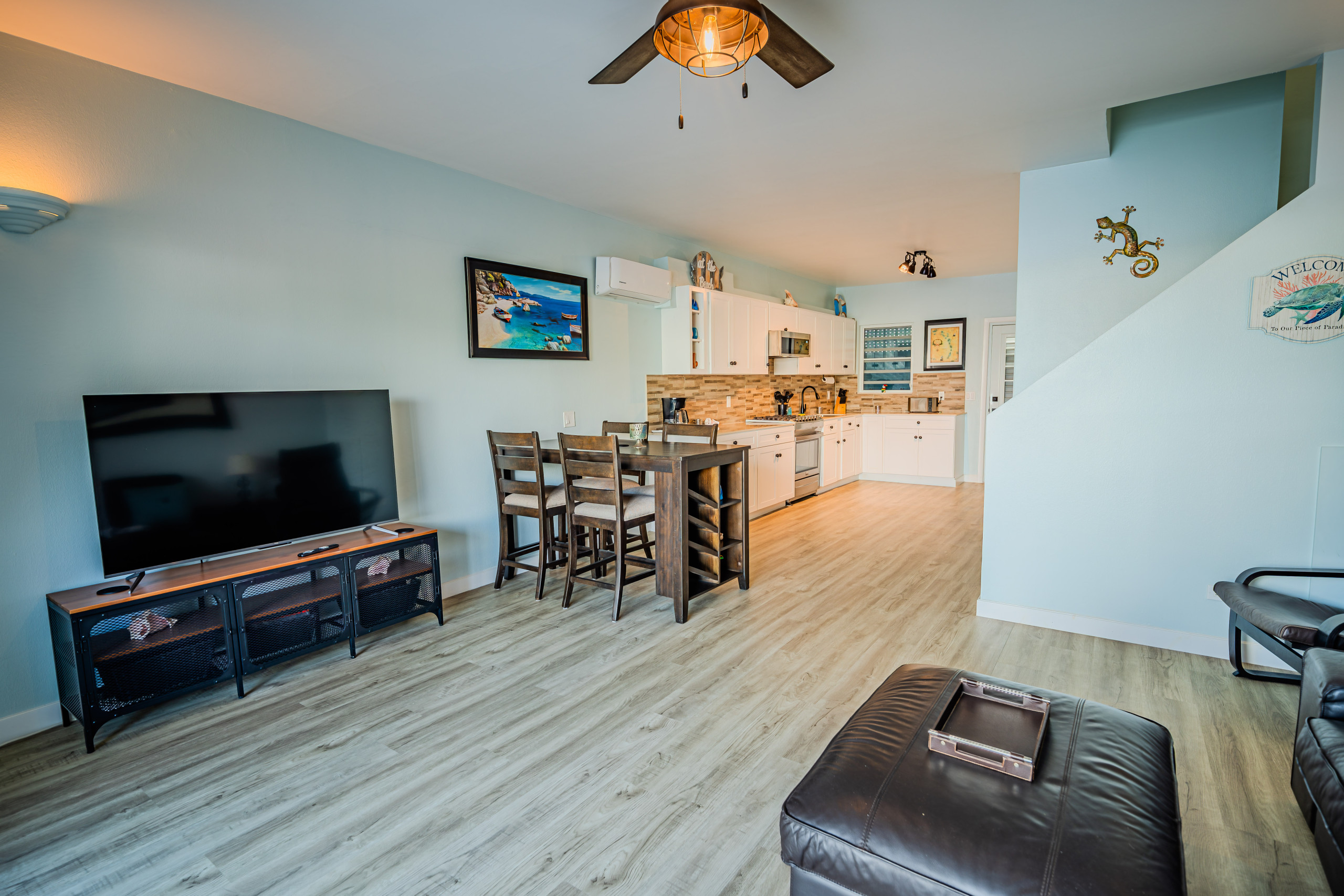 Step inside and be welcomed by a spacious open-plan layout, where sleek design meets effortless comfort. The state-of-the-art kitchen features stainless steel appliances, a stylish breakfast bar, and a chic dining area, ideal for entertaining or enjoying relaxed family meals. Throughout the villa, luxury vinyl plank flooring, ambient lighting, and sophisticated décor create a calming, coastal ambiance.