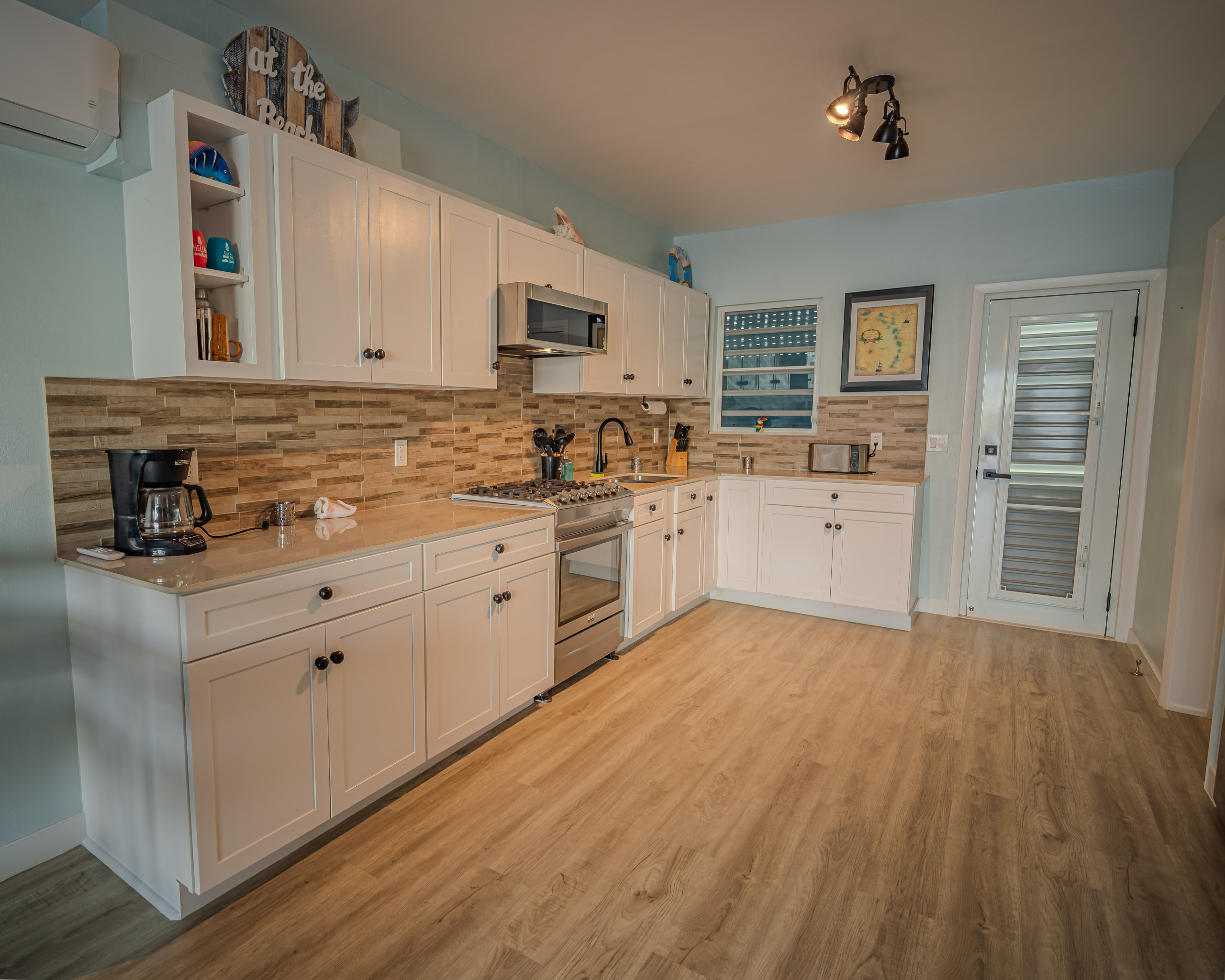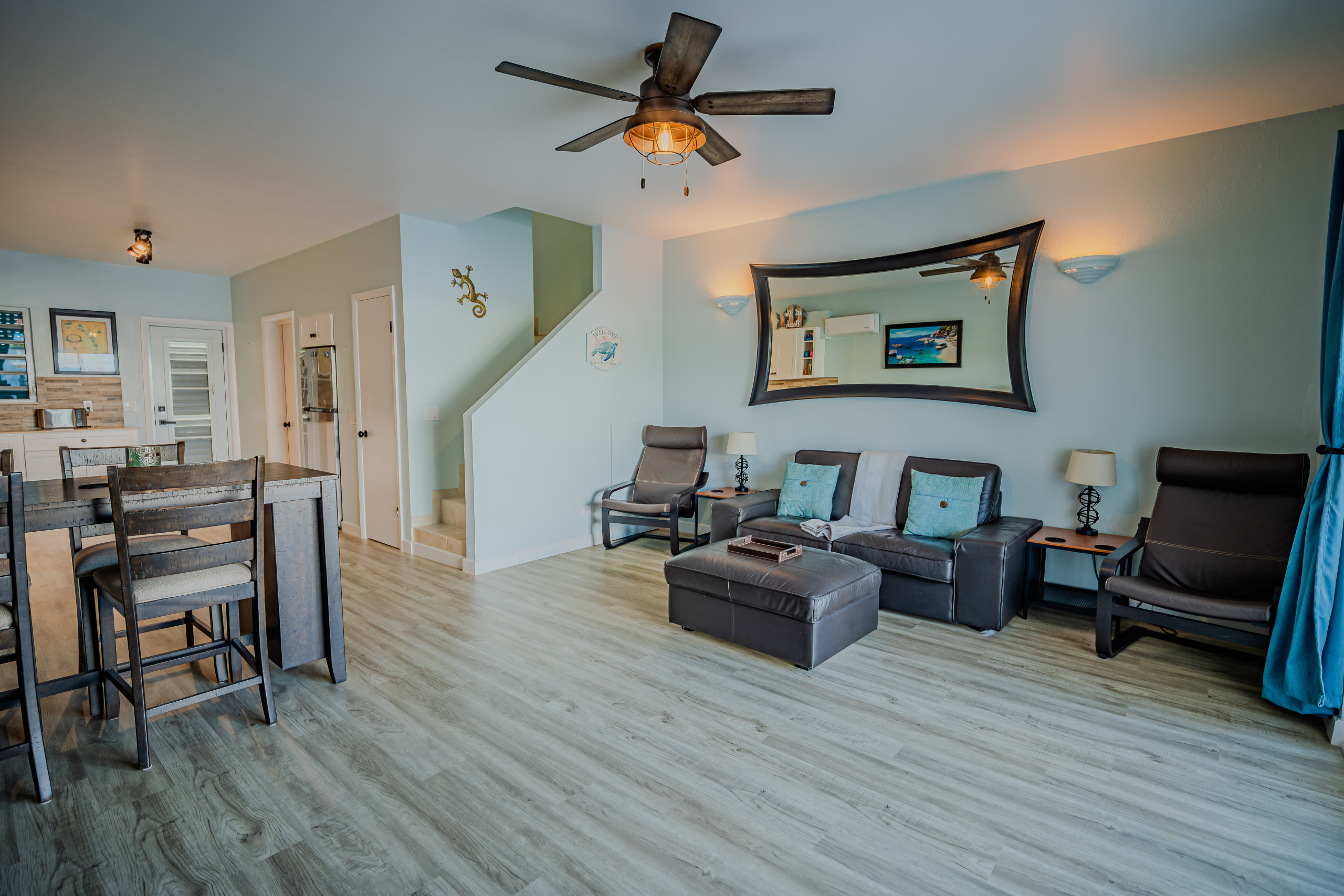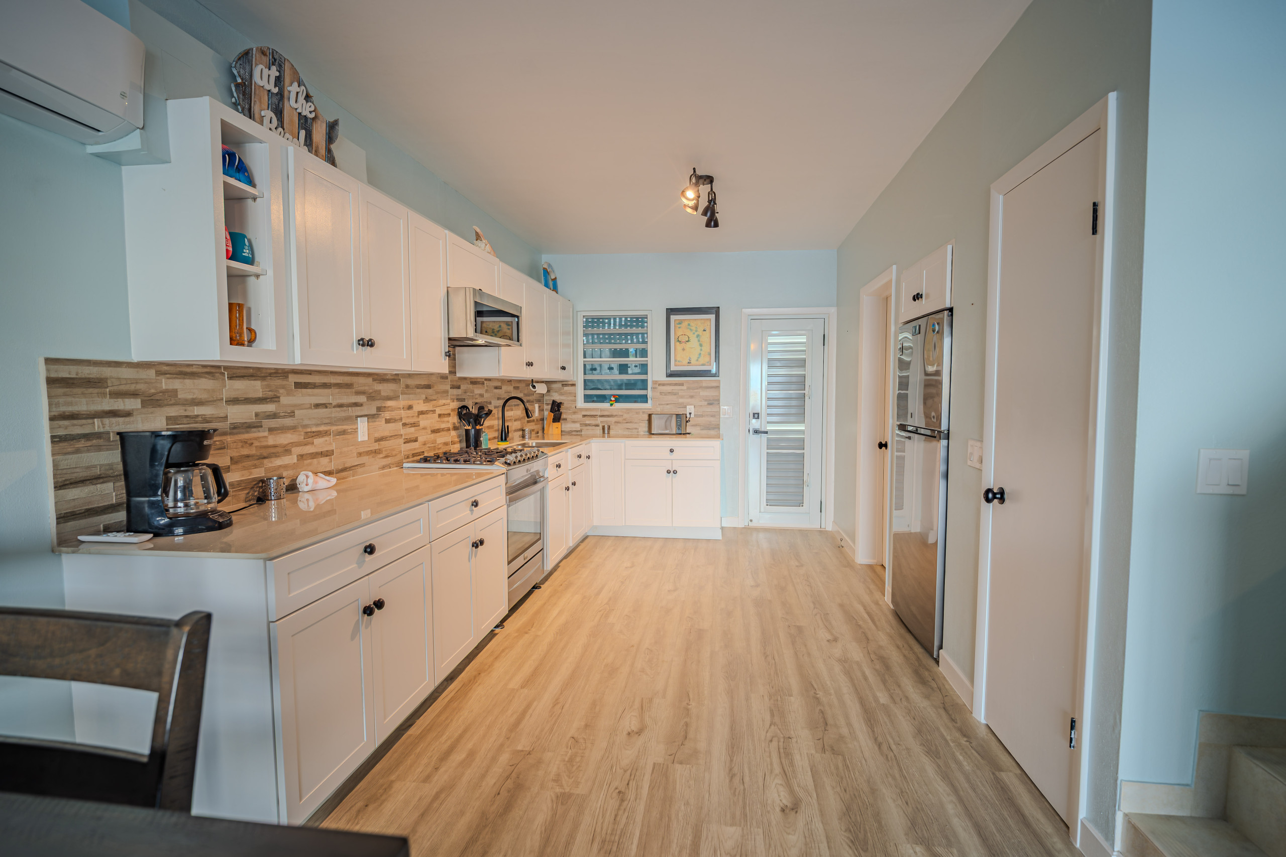 Step inside and be welcomed by a spacious open-plan layout, where sleek design meets effortless comfort. The state-of-the-art kitchen features stainless steel appliances, a stylish breakfast bar, and a chic dining area, ideal for entertaining or enjoying relaxed family meals. Throughout the villa, luxury vinyl plank flooring, ambient lighting, and sophisticated décor create a calming, coastal ambiance.