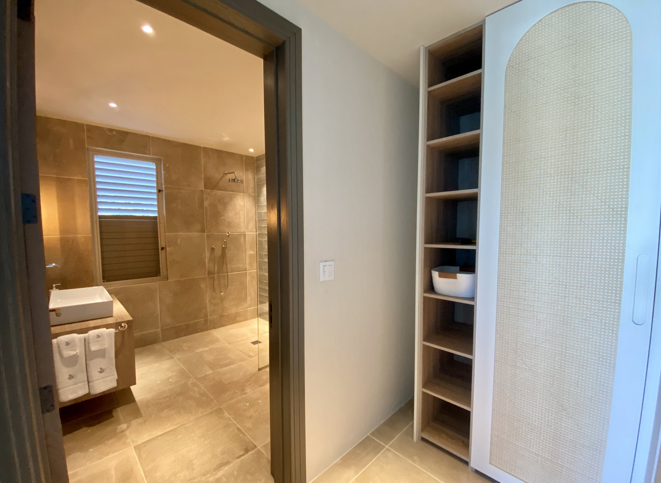 This exceptional villa boasts six luxurious bedroom suites, each designed for ultimate relaxation. The master bedroom showcases the most spectacular views, while all bedrooms feature patio doors that open onto private verandas, inviting the stunning surroundings inside. Each ensuite bathroom is a haven of calm, featuring ambient warm lighting around the mirrors and stylish directional spotlights on the feature tiles in the shower. At night, under-lighting in the vanity units gently guides your way, ensuring a peaceful retreat.