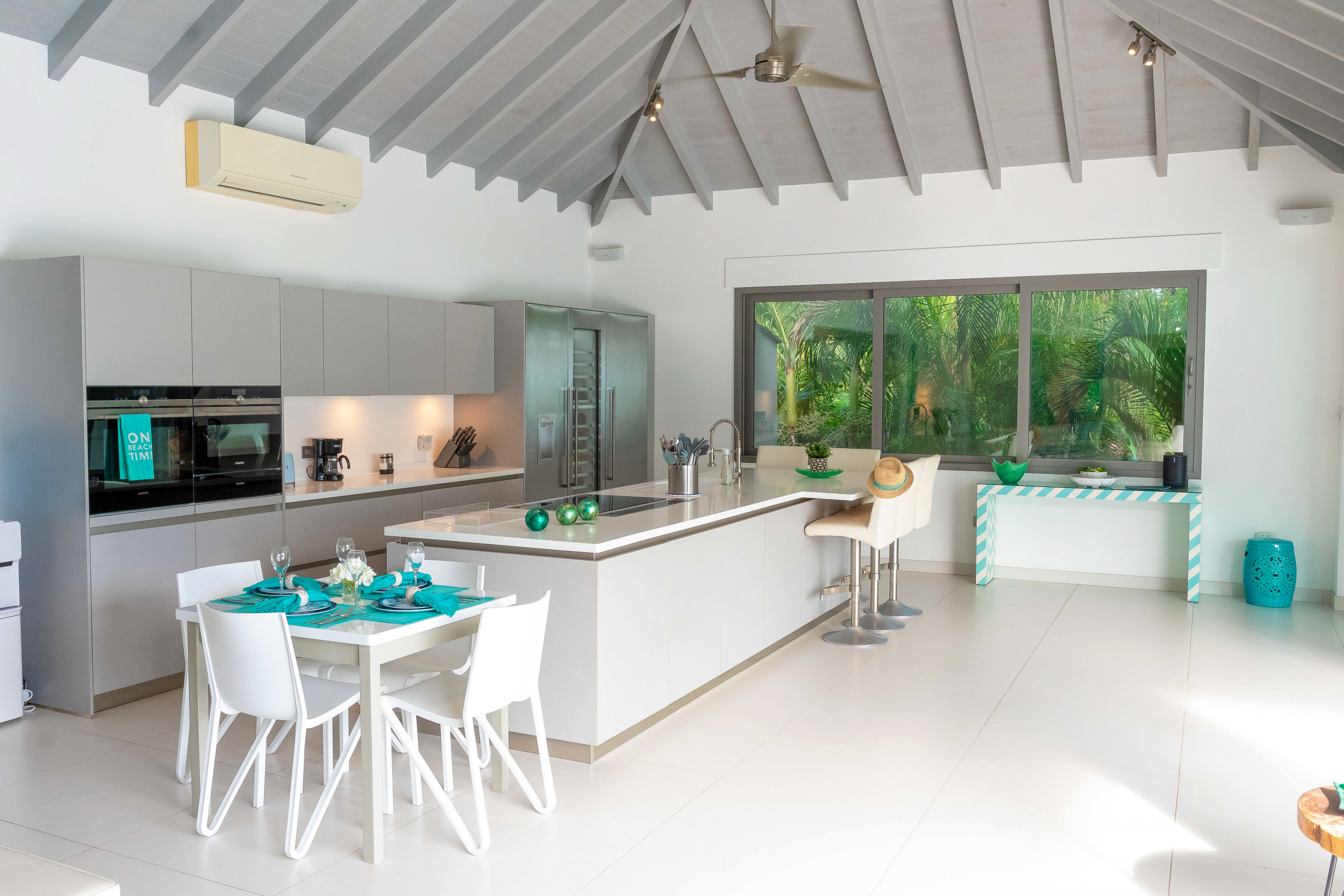 The villa is fully equipped with air conditioning and ceiling fans in every room, ensuring a cool and comfortable stay. Linens, towels, and extra beach towels are provided for all guests, so you can simply pack light and enjoy your vacation.
